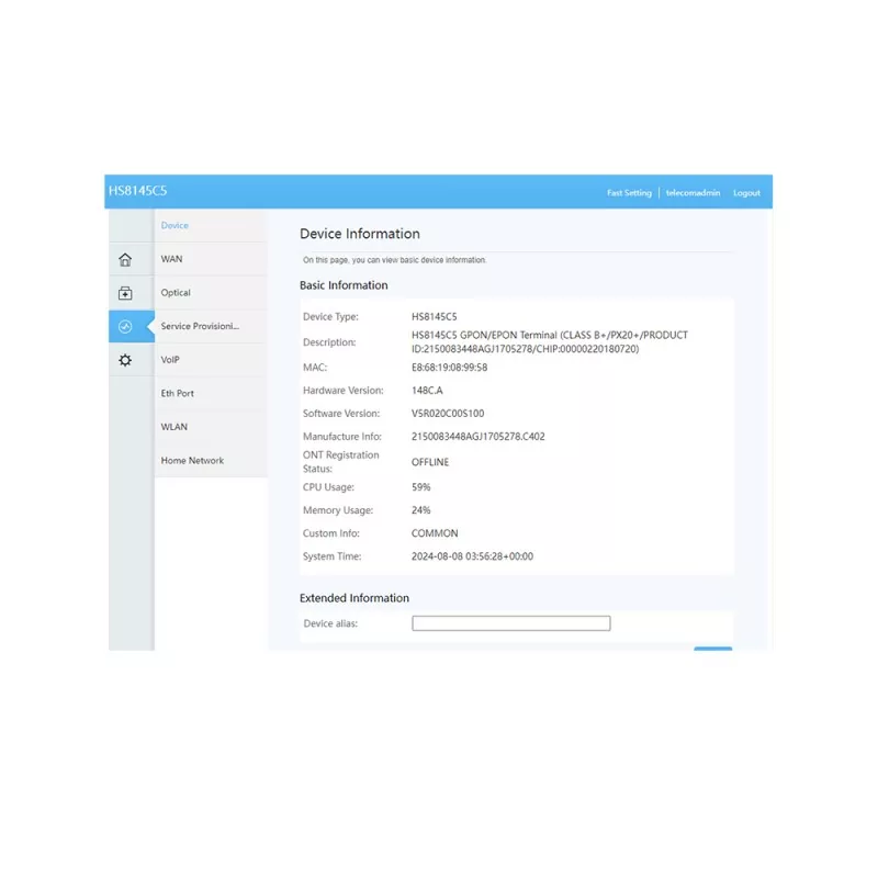 HS8145C5 Single Band XPON WIFI ONU ONT ของผู้ผลิต TENKILOMETERS ประกอบด้วยพอร์ต POTS หนึ่งพอร์ต, พอร์ต Gigabit Ethernet (GE) หนึ่งพอร์ต และพอร์ต Fast Ethernet (FE) ที่ปรับเปลี่ยนอัตโนมัติสามพอร์ต พร้อมด้วยพอร์ต Wi-Fi